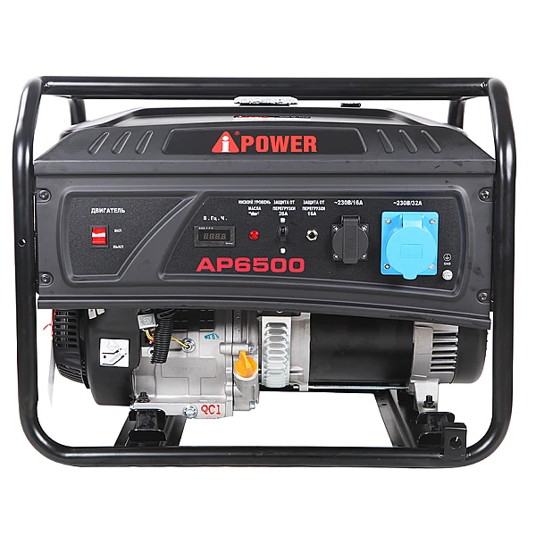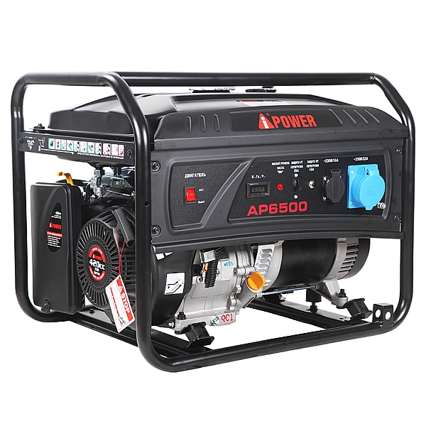 Бензиновый генератор A-iPower Lite AP6500 - доступный, надежный и относительно компактный источник энергии, номинальная мощность которого составляет 6 кВт. Модель оборудована силовой розеткой, необходимой для снятия полной мощности и питания высоконагруженных потребителей.
