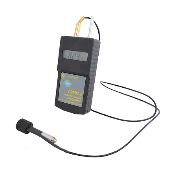 Комплект поставки твердомера ТЭМП-3 – блок электронный в пластмассовом или металлическом корпусе, датчик, толкатель, 2 элемента питания тип АА, дискета с программным обеспечением, паспорт с методикой поверки, чехол, первичная поверка.