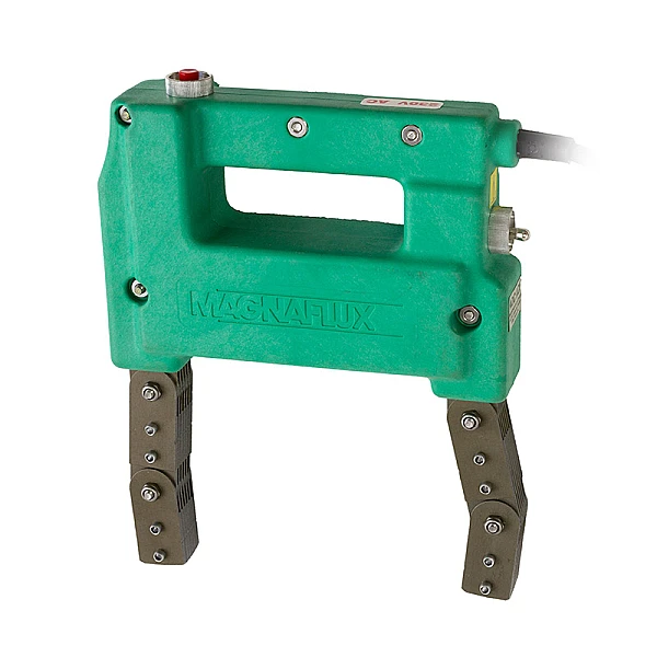 Универсальный, мощный электромагнит MAGNAFLUX Y7обеспечивает наведение устойчивого магнитного поля как переменного тока, для выявления поверхностных дефектов, так и импульсное поле постоянного тока для выявления поверхностных и подповерхностных дефектов при магнитопорошковом контроле. Снабжен переключателем для перехода с переменного на постоянный ток намагничивания.