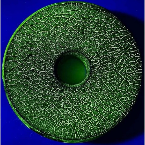 6. Трещины в виде желто-зеленых флуоресцентных линий становятся отчетливо видны.