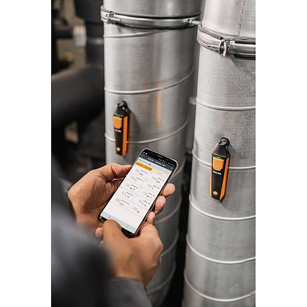 Измерение температуры и влажности воздуха в помещениях и воздуховодах. Автоматический расчет точки росы и температуры шарика смоченного термометра в приложении testo Smart Probes.