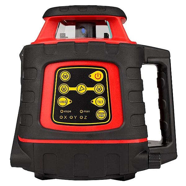Угол сканирования лазерного луча можно сузить до 10, 45, 90 или 180°. Полученный отрезок линии можно перемещать, нажимая кнопки на приборной панели или пульте. Функция наклона ротационного нивелира AMO ROTOR 300 позволяет установить положение вертикальной или горизонтальной плоскости под точным углом для одной оси. При этом другая ось выравнивается автоматически. Роторный излучатель имеет три режима скорости вращения: 300, 500 и 800 об/мин.