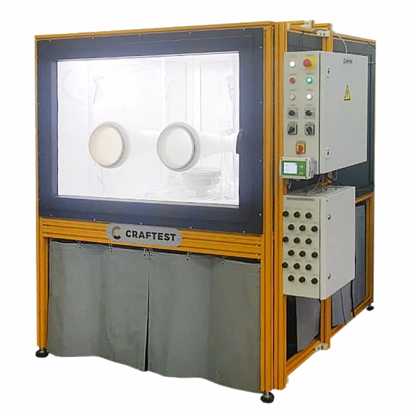 Шторм-камера КРАФТЕСТ (межд. CRAFTEST) предназначена для автоматизированного и ручного нанесение порошкового проявителя на детали, а также в труднодоступные зоны сложной геометрии при проведении капиллярного контроля.
