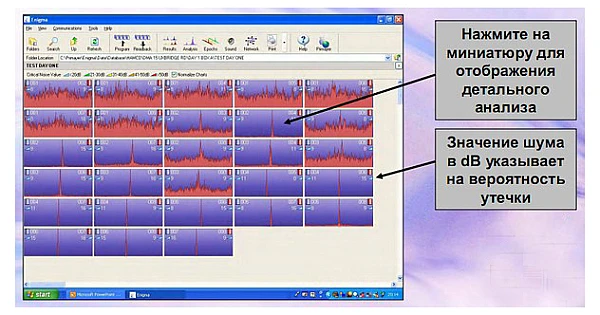 • Эффективность - запись (обнаружение) шума и определение местоположения утечки одновременно