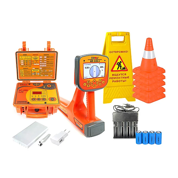 Комплект оснащен новейшим компактным автономным генератором АГ-108 со встроенными элементами питания, дисплеем и встроенной индукционной антенной, для трассировки коммуникации бесконтактным способом.